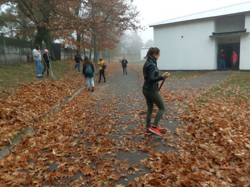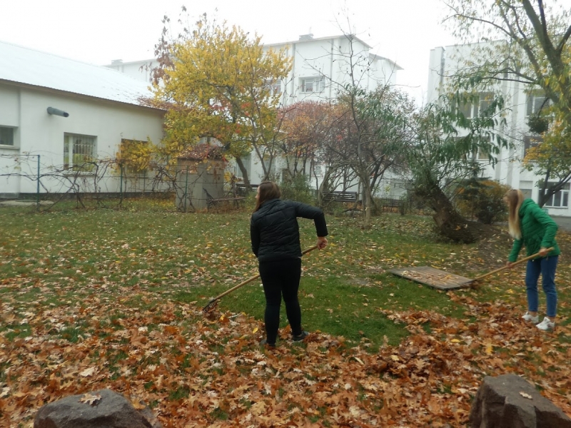 Туман і мряка не завадять прибрати листя на тереторії факультету!