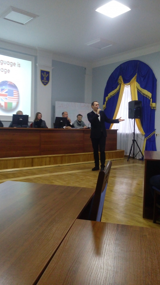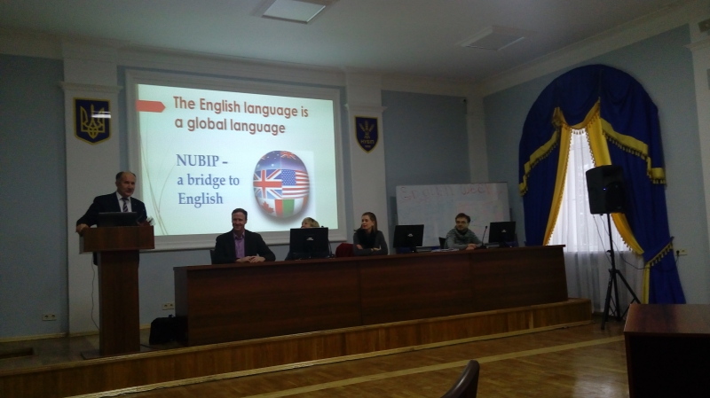 Усіх присутніх привітав проректор з навчальної і виховної роботи, який наголосив на важливості вивчення англійської мови, володіння оскільки вільне англійською мовою відкриває кожному з нас доступ до глобальних знань, інформації та міжнародних ринків.