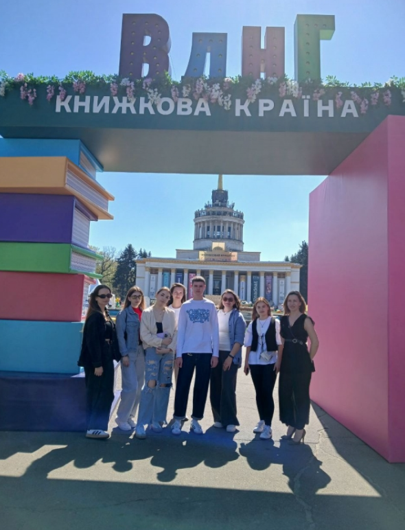 Англійська мова і книжковий всесвіт. У рамках Тижня англійської мови доцент Наталія ЗАЙЦЕВА та Марина ПАВЕЛЬЧУК разом зі студентами відвідали щорічний фестиваль «Книжкова країна», який став справжнім святом для всіх шанувальників друкованого слова.Під час виставки учасники мали змогу спілкуватися з українськими письменниками та поетами, дізнатися більше про сучасні тенденції на книжковому ринку, а також ознайомитися з новими англомовними виданнями.Зустріч із літературою в живому, емоційному контексті підкреслила, що читання — це не лише важлива складова мовного розвитку, а й захопливий процес, який відкриває перед студентами неймовірний світ культури, уяви та натхнення.