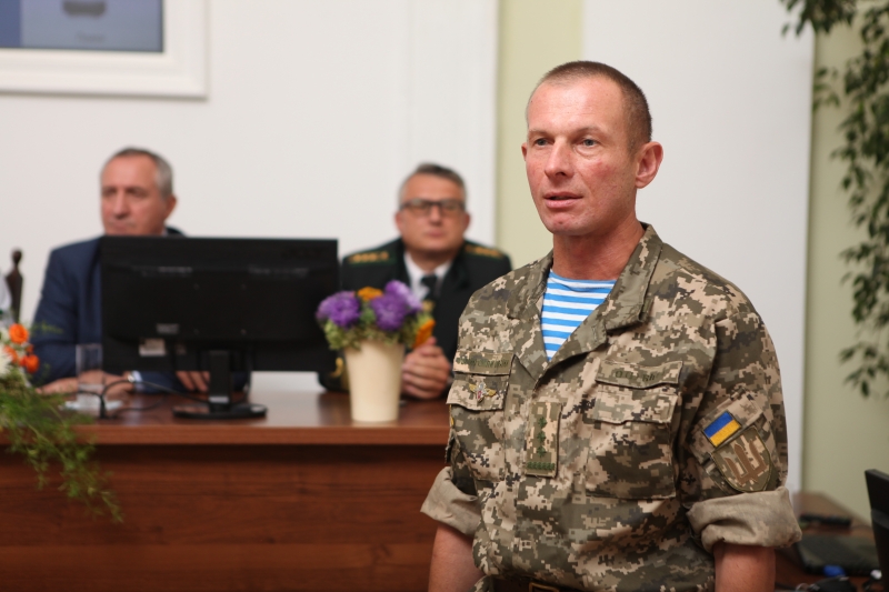 З вітальним словом до першокурсників звернувся також викладач кафедри військової підготовки НУБіП України полковник Андрій Андрієвський, який запросив студентів навчатися на військовій кафедрі університету і відзначив надзвичайно високі досягнення студентів ННІ лісового і садово-паркового господарства, котрі нині проходять курс офіцерської підготовки.