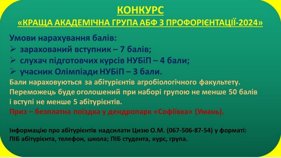 Повідомила про оголошений конкурс «Найкраща академічна група з профорієнтації» і наголосила про необхідність долучатися до заходу.