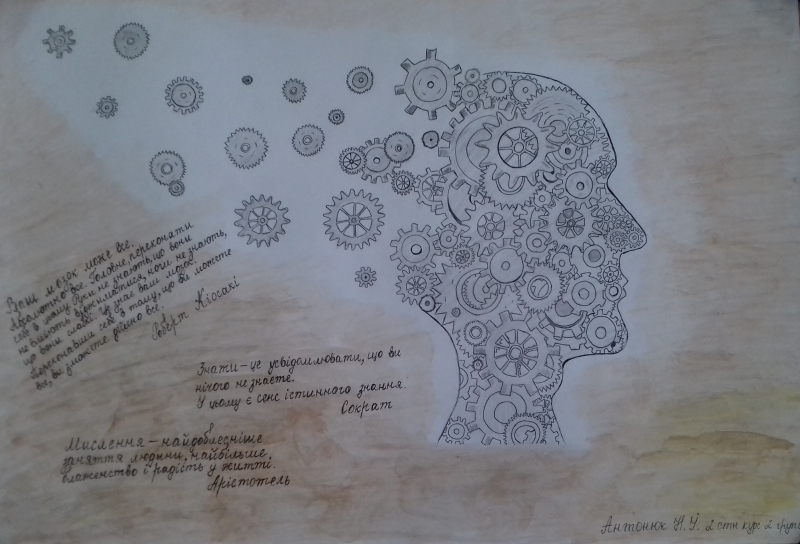 У своїх пошуках істини філософія є найближчою родичкою науки, але вона значно менше, ніж наука, відсторонюється від краси. У своєму бажанні зрозуміти людину, сприяти її щасливому майбутньому філософія в чуттєво-емоційному плані наближується до мистецтва. Вона говорить не тільки з нашим розумом, але і з нашим серцем. У контексті Тижня філософії було проведено конкурс художніх робіт «Я і філософія». Наші талановиті студенти повною мірою проявили свою креативність, намагаючись відійти від жорсткого дискурсу та звертаючись до нашої фантазії, наших мрій, нашого особистого переживання буття в світі.