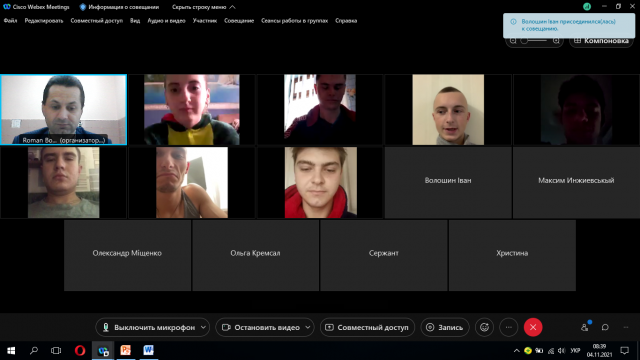 У зв’язку з дистанційним навчанням, організаційно-виховні години у групі проводяться онлайн з використанням платформи WebEx.