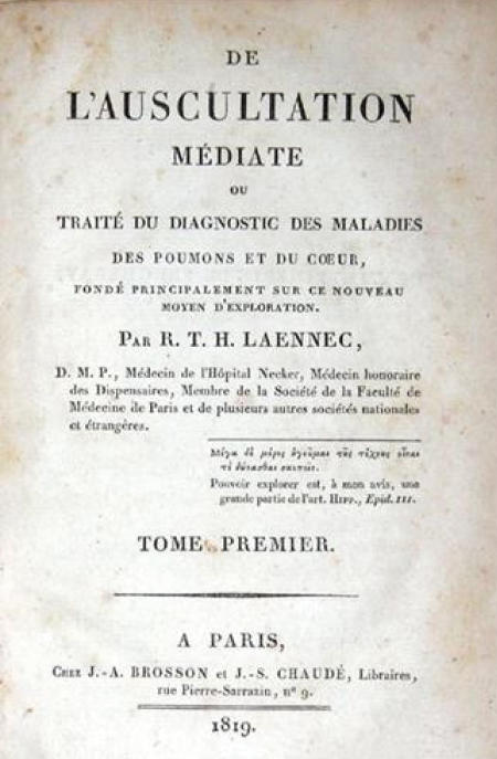 De l'Auscultation médiate, ou Traité du diagnostic des maladies des poumons et du coeur, fondé principalement sur ce nouveau moyen d'exploration
