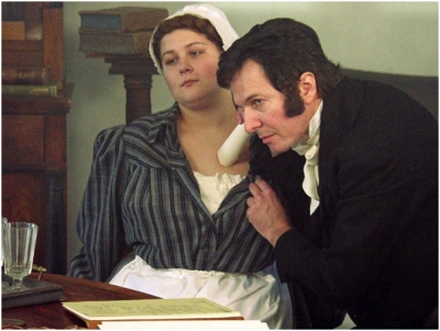 Лаеннек проводить аускулькультацію за допомогою аркуша паперу (реконструкція)