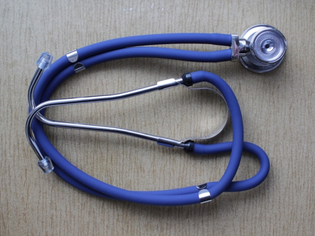 Зліва-направо: Стетоскоп Раппапорта, стетоскоп Каммана (1855 р.), електронний стетоскоп