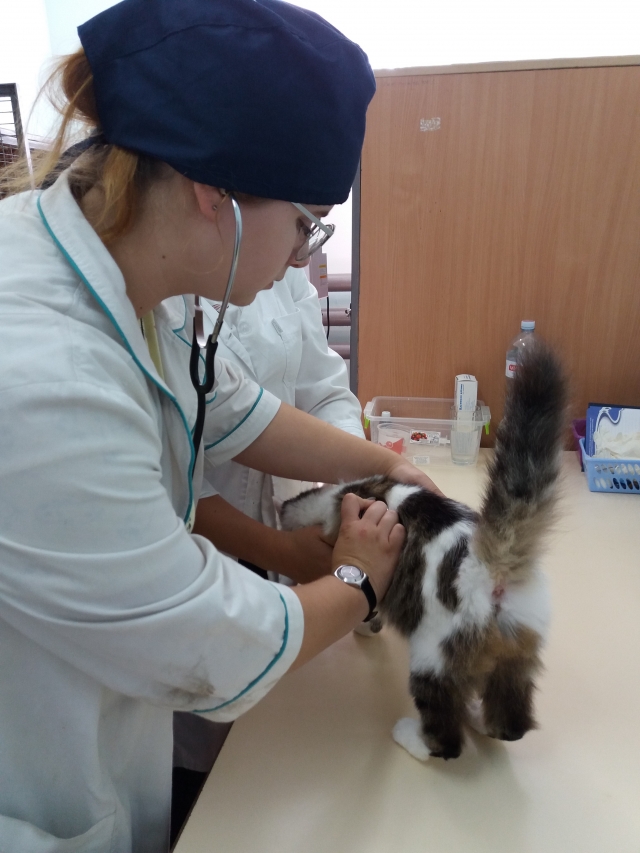 Студенти факультету ветеринаної медицини НУБіП України проводять аускультацію грудної клітини кота