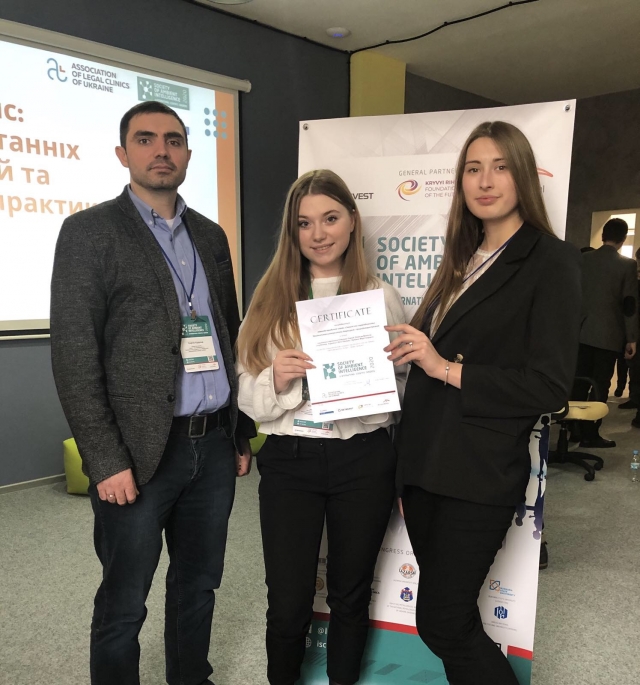 11.02.2020 р. Юридична клініка «Захист та справедливість», яка функціонує на базі нашого факультету, взяла участь у НАЦІОНАЛЬНОМУ КОНКУРСІ: «Відповідальний бізнес і права людина». Студентки 2-го курсу Бутіна Марія та Коротич Юлія представили результати свого дослідження на обрану тему: «Кредитно- фінансові установи в аспекті прав людини» у місті Кривий Ріг, де відбулася конференція, на якій ми достойно представили нашу команду і дали оцінку проробленій роботі.