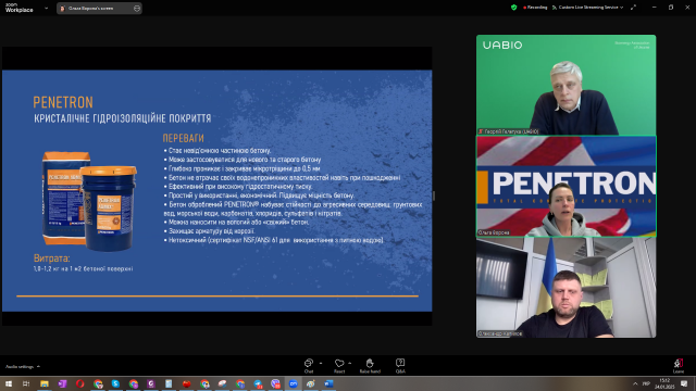 Участь викладачів кафедри будівництва НУБіП України у онлайн-семінарі "UABIO Friday. Пенетрон Україна: Сталий захист бетону від мікробіологічної корозії — досвід лідера ринку"