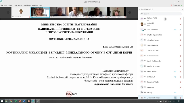 УДРУГЕ ПОСПІЛЬ НА КАФЕДРІ БІОХІМІЇ І ФІЗІОЛОГІЇ ТВАРИН ІМ. АКАД. М. Ф. ГУЛОГО ВІДБУВСЯ ДИСТАНЦІЙНИЙ РОЗГЛЯД ДОКТОРСЬКОЇ ДИСЕРТАЦІЇ ЗА УЧАСТІ УКРАЇНСЬКИХ ТА БІЛОРУСЬКИХ ВЧЕНИХ НА ПЛАТФОРМІ WEBEX