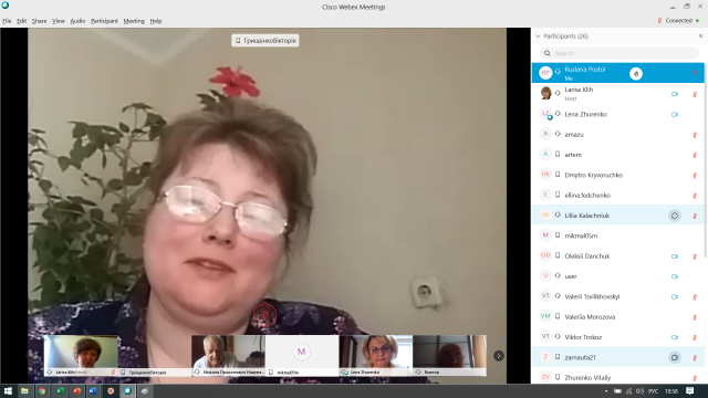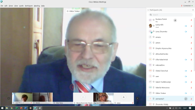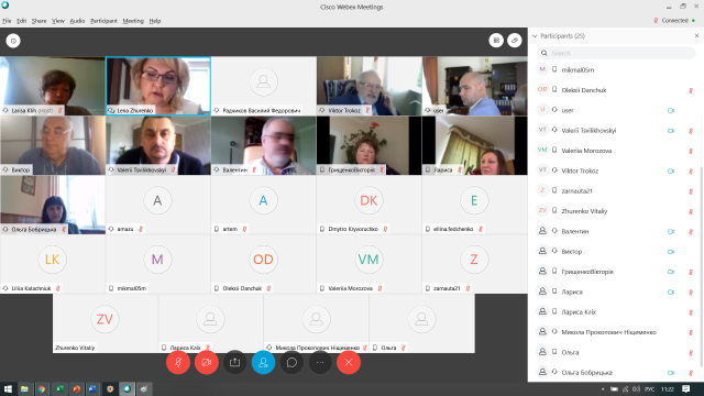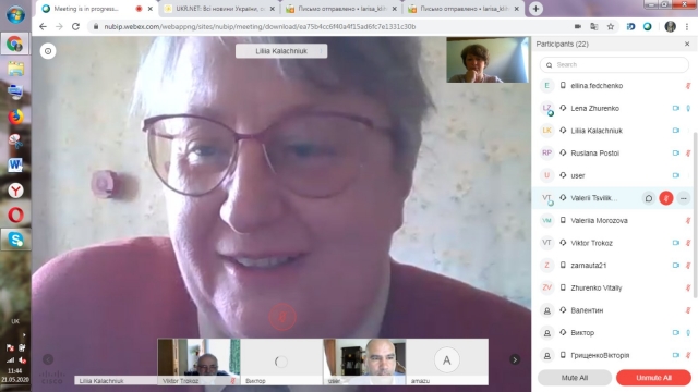 Онлайн засідання стало можливим завдяки начальнику навчально-методичного відділу НУБіП України, доктору педагогічних наук, професору Ларисі Кліх, яка була організатором і модератором заходу на платформі Webex.
