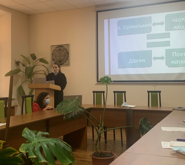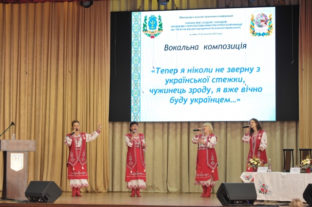 Пленарне засідання конференції було забарвлено виступами студентів, які проникливо читали поезію Агатангела Кримського. А закінчилось засідання музикальним виступом артистів кафедри культурології на чолі з завідувачкою Іриною Майданюк.