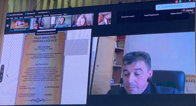 Конференція проходила в двох форматах наживо та он-лайн, що дозволило віддалено приєднатися до її роботи Олександрові Юринцю – заступнику директора з навчальної роботи Володимир-Волинського педагогічного фахового коледжу ім. А. Ю. Кримського Волинської обласної ради, який розповів, як зберігається там пам'ять про А. Кримського.