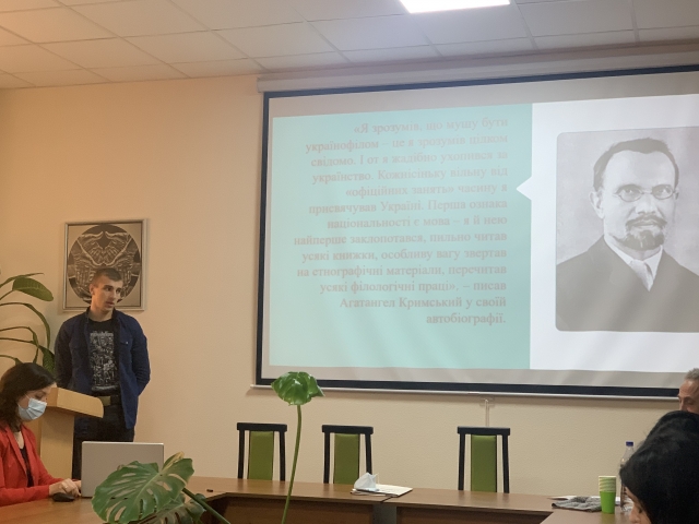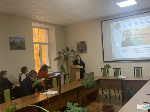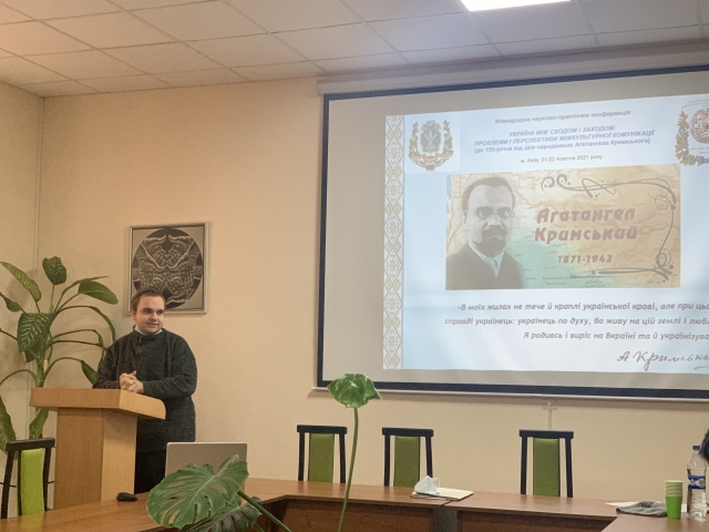 21 жовтня 2021 року на гуманітарно-педагогічному факультеті відбулася значна подія: Міжнародна очно-дистанційна науково-практична конференція «Україна між Сходом і Заходом: проблеми і перспективи міжкультурної комунікації», присвячена 150- річчю від дня народження особливої постаті в науці, літературі та культурі ХХ століття - Агатангела Юхимовича Кримського - всесвітньовідомого українського вченого, ім’я якого було віднесеного Генеральною Асамблею ЮНЕСКО до переліку видатних діячі світу, одного із засновників Української академії наук, сходознавця, що будував мости між українською культурою та культурами народів Сходу, поліглота, перекладача, філософа, письменника, історика.