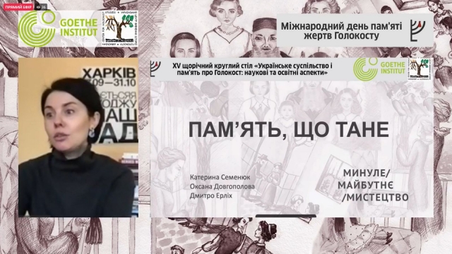 27 січня з нагоди Міжнародного дня пам’яті жертв Голокосту за ініціативи Українського центру вивчення історії Голокосту у співпраці з Goethe-Institut в Україні відбувся п’ятнадцятий круглий стіл «Українське суспільство і пам'ять про Голокост: наукові та освітні аспекти». Кожен з бажаючих мав можливість бути присутніми на онлайн-трансляції та особисто вислухати думки міжнародних експертів, що обговорювали актуальні теми та презентували нові ідеї в плані політики пам’яті в Україні.