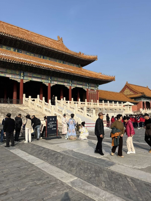 Надзвичайно захоплюючою була екскурсія у культурну і політичну столицю Пекін, а саме музейний комплекс Заборонене місто (Forbidden City) — символ Пекіна і втілення епохи імператорів. Місто побудоване за часів правління династії Мін і упродовж 500 років (з XV до початку XX століття) було резиденцією імператорів і центром влади Китаю. Це найбільший палацовий комплекс у світі (961×753 метрів, 720 тис. м², 980 будівель). Вхід у це місто був строго заборонений звичайним смертним, навіть дуже важливим персонам міські ворота відкривали у певні дні — коли приїжджали закордонні гості, чи проводились святкові заходи, а поважних гостей приймали імператори лише у Залі Вищої Гармонії (Тайхедянь).