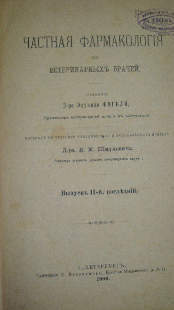 Нині бібліотечний фонд нараховує понад 500 екземплярів бібліотечних одиниць минулого століття. Найстарішими виданнями є «Основы фармакологии» (1880), «Лекции фармакологии для врачей и студентовь» (1887), «Repetitorium по фармакологии» (1889) тощо. А чого варті підписані власне авторами книги С.В. Баженова, відомих фармакологів Мозгова І.Ю., Черв’якова Д.К., Кравкова М.П., Говорова М.П., Сошественського М.О., Вашетка М.П. та чимало інших. Є багато видань на іноземній мові. Наскільки цінною є, наприклад, «The Pharmacopeia of the US of America» (1960). Завдяки міжкафедральній співпраці з кафедрою анатомії, гістології і патоморфології тварин ім. акад В.Г. Касяненка професором О.П. Мельником було люб’язно передано до фонду нашої бібліотеки ще ряд раритетних видань минулого та позаминулого століть.