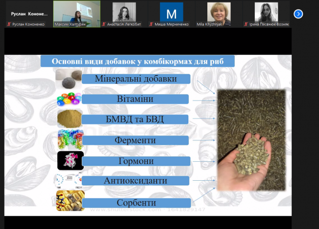 Тема лекції була присвячена дослідженням в годівлі риб, а саме, їх мінеральним добавкам природного походження.
