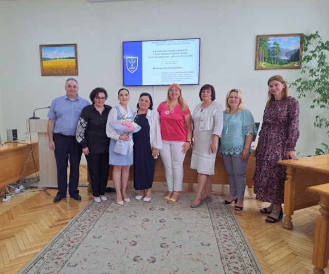 30 серпня 2025 року на засіданні разової спеціалізованої вченої ради, утвореної наказом НУБіП України від 4 липня 2025 року №870, у складі: голови разової спеціалізованої вченої ради – Олени Любовець, доктора історичних наук, професора, професора кафедри міжнародних відносин і суспільних наук; рецензентів – Сергія Білана, доктора історичних наук, професора, професора кафедри міжнародних відносин і суспільних наук; Вікторії Хвіст – кандидата історичних наук, доцента, доцента, завідувача кафедри міжнародних відносин і суспільних наук; офіційних опонентів – Ірини Петренко, доктора історичних наук, професора завідувача кафедри всесвітньої історії, релігієзнавства та методик їх викладання Полтавського національного педагогічного університету імені В. Г. Короленка; Ірини Верховцевої – доктора історичних наук, професора, професора кафедри публічного управління та адміністрування Державного університету інформаційно-комунікаційних технологій відбувся успішних захист здобувачки Євгенії Шевцової ступеня доктора філософії з галузі знань «Гуманітарні науки» за спеціальністю 032 «Історія і археологія».
