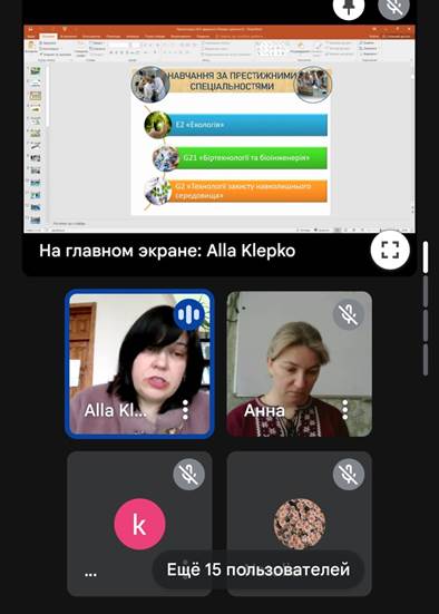 Викладачі кафедри загальної екології, радіобіології та безпеки життєдіяльності на чолі із завідувачем кафедри д.б.н. Клепко А.В., замісником декана факультету захисту рослин, біотехнології та екології, доцентом Бондарь В.І., доцентом Кудрявицькою А.М провели онлайн зустрічі із випускниками опорного закладу освіти «Баришевський ліцей» Баришівської селищної ради та ліцею №2, №3 Ладижинської міської ради Вінницької області. Ці зустрічі з учнями старших класів відбулися у рамках співпраці між навчальними закладами та НУБіП України з приводу профорієнтаційної роботи, умов вступу та навчання в університеті. Під час зустрічі випускники дізналися про переваги навчання у НУБіП України, про співпрацю з університетами інших держав, про програму подвійних дипломів, перспективи працевлаштування, про можливість вступу на навчання на нову престижну спеціальність «Технології захисту навколишнього сеоердовища». Замдекана Бондарь В.І. надала інформацію для майбутніх вступників, щодо минулорічного прохідного балу на бюджет, ліцензійний обсяг, вартість навчання. Завідувачка кафедри А.В. Клепко більш детально зупинилася на підготовчих курсах для вступу в НУБіП України, участі у Всеукраїнській олімпіаді у НУБіП України, яка дозволить додатково перевірити свій рівень знань перед складанням Національного мультипредметного тесту, який буде основним критерієм у вступній кампанії 2025 року. Кудрявицька А.М. запропонувала учням завітати на «День відкритих дверей» до нашого університету і дізнатися більше інформації про перспективи навчання в НУБіП України. Випускники активно долучилися до обговорення, задавали питання, цікавилися організаційними заходами у навчанні, і дозвіллі студентів, проживанням студентів у гуртожитках. Наостанок, сторони домовилися про подальшу співпрацю, побажали випускникам плідного успішного навчання, впевнено прагнути, ніколи не сумніватися в собі та дорожити своєю мрією, Мирного неба всім нам!