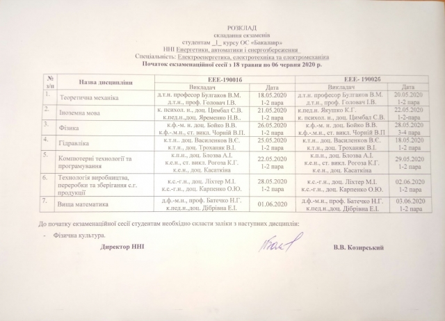 Увага! РОЗКЛАД та інформація щодо проведення літньої екзаменаційної сесії 2019/20 для бакалаврів 1-3 курсів повного, а також 1 курсу скороченого терміну навчання!