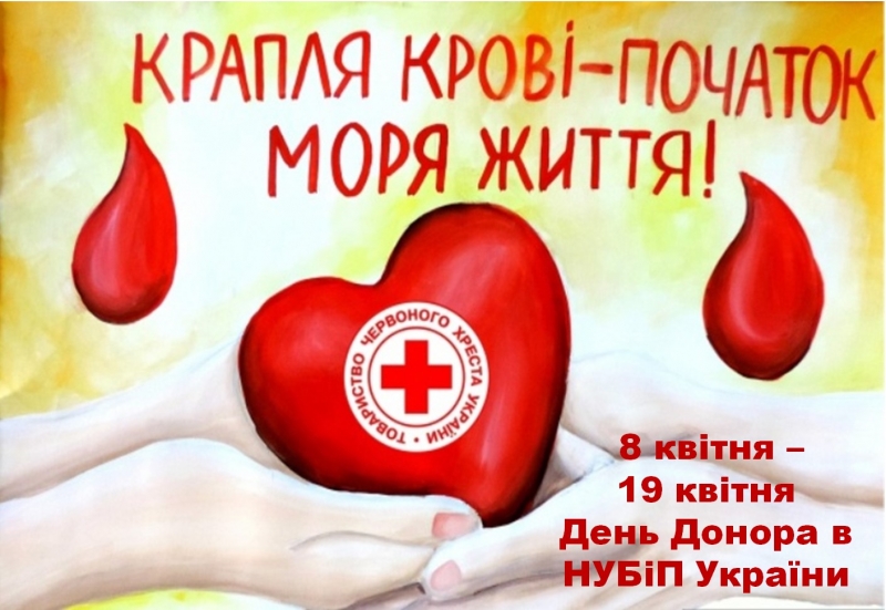 Враховуючи велику потребу лікувально-профілактичних закладів м. Києва у крові, її компонентах і препаратах, для своєчасного надання трансфузійної допомоги постраждалим військовослужбовцям запрошуємо всіх бажаючих взяти участь у благодійній акції «День донора», що проходитиме з 8 квітня по 19 квітня у читальній залі гуртожитку № 10, що за адресою: вул. Генерала Родімцева, 7а.