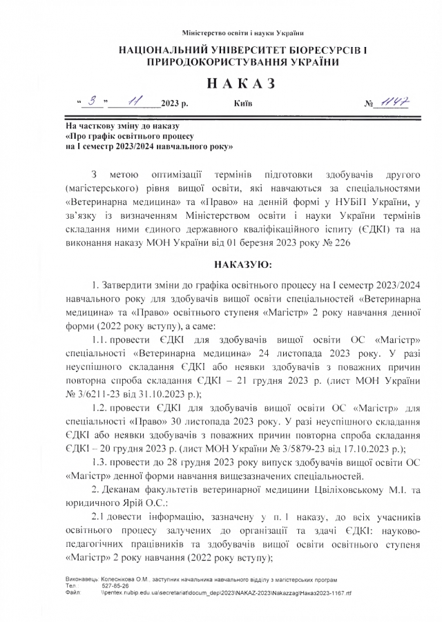 Увага! Внесено зміни до освітнього процесу для здобувачів вищої освіти спеціальності "Право" ОС "Магістр" 2 року навчання денної форми 8 листопада 2023 року 02:00 - 02:00