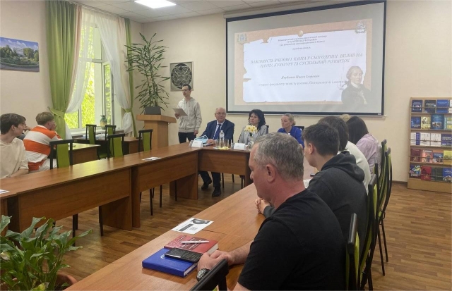 Безкровна Ярослава, студентка гуманітарно-педагогічного факультету презентувала тему «Постмодерні трансформації кантівського категоричного імперативу». Доповідь була присвячена аналізу того, як фундаментальні моральні принципи Канта трансформуються та переосмислюються в умовах постмодерного суспільства, де істина і моральність набувають множинних трактувань.