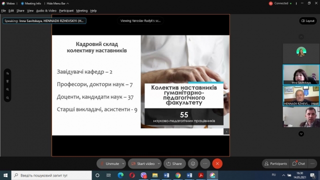 В.о. декана гуманітарно-педагогічного факультету Інна Савицька ознайомила наставників із змістом, формами і методами виховної роботи гуманітарно-педагогічного факультету, проінформувала наставників академічних груп Університету про особливості реалізації на гуманітарно-педагогічному факультетів програми виховання студента «Фахівець. Громадянин. Патріот».