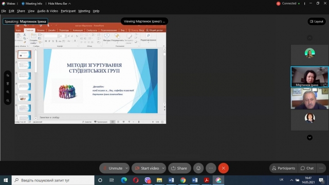 Доцент Ірина Мартинюк ознайомила наставників із сучасними методиками розвитку згуртованості студентів.