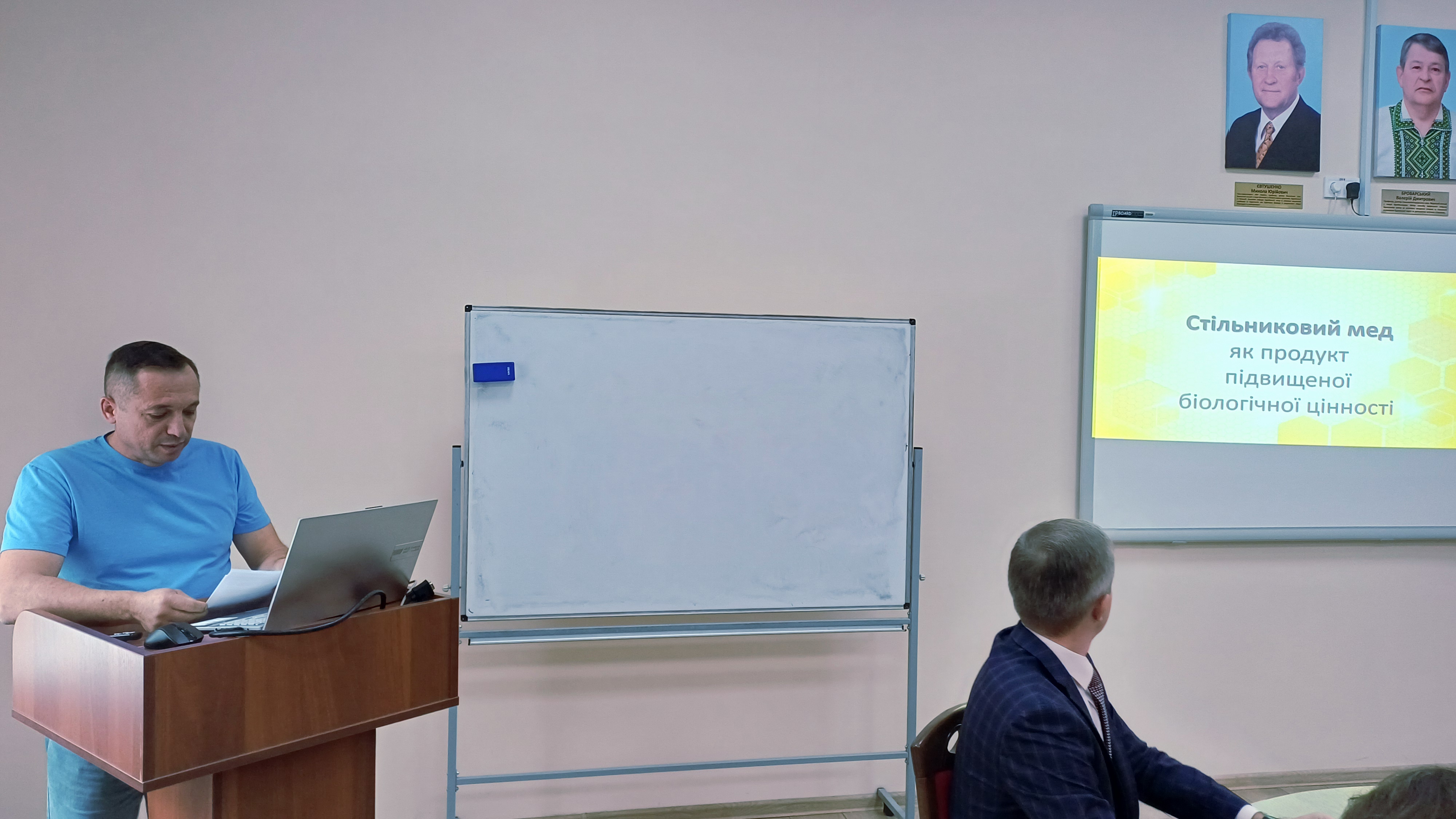 Потім згідно порядку денного, заслухали наукову доповідь доцента кафедри бджільництва, кандидата с.-г. наук, доцента Ігоря ГОЛОВЕЦЬКОГО на тему “Стільниковий мед як продукт підвищеної біологічної цінності”, яка викликала жваве обговорення та зацікавленість серед членів вченої ради.