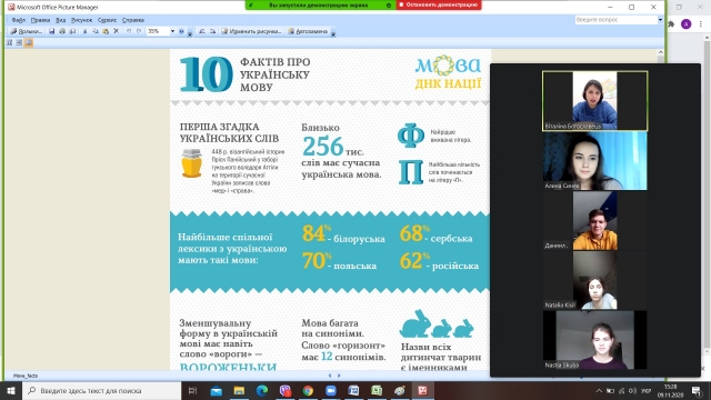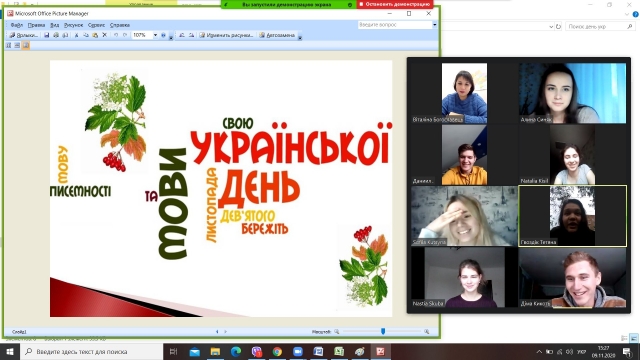 9 листопада 2020 року на базі платформи Zoom куратором групи «БТ-1801» – Богославець В.А. – факультету захисту рослин, біотехнологій та екології було проведено вебінар на тему: «Популяризація української мови в сучасному світі». День для такого заходу був вибраний неспроста. Як всі ми знаємо, 9 листопада відзначається День української писемності та мови.