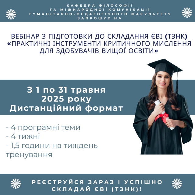 Вебінар з підготовки до складання ЄВІ (ТЗНК) «Практичні інструменти критичного мислення для здобувачів вищої освіти»