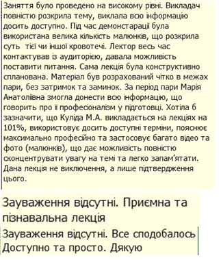 Всі анкети (студентів і викладачів) були вчасно проаналізовані та передані до навчальної частини.