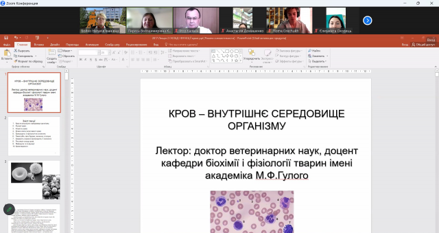 5 вересня 2023 року відбулася відкрита лекція доцента кафедри біохімії і фізіології тварин імені академіка М. Ф. Гулого, доктора ветеринарних наук, доцента Лариси Кладницької для студентів 2 курсу факультету ветеринарної медицини (спеціальність 211 «Ветеринарна медицина», ОC «Магістр») на тему: «Фізіологія крові». Лекція відбулася у дистанційному форматі на платформі Zoom Meetings.