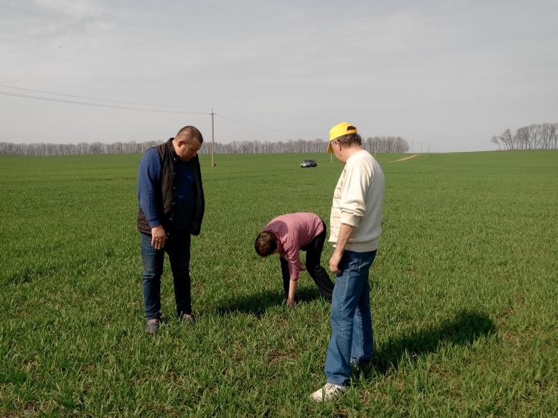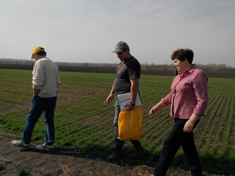 В розпал весняних польових робіт викладачі кафедри генетики, селекції і насінництва ім. проф. М. О. Зеленського професор Ковалишина Г. М. і асистент Дмитренко Ю.М. на чолі із завідувачем кафедри Жемойдою В. Л. провели огляд посівів озимих культур, зробили обліки з розвитку рослин та ураження їх збудниками хвороб на дослідному полі в ВП НУБіП України «Агрономічна дослідна станція».