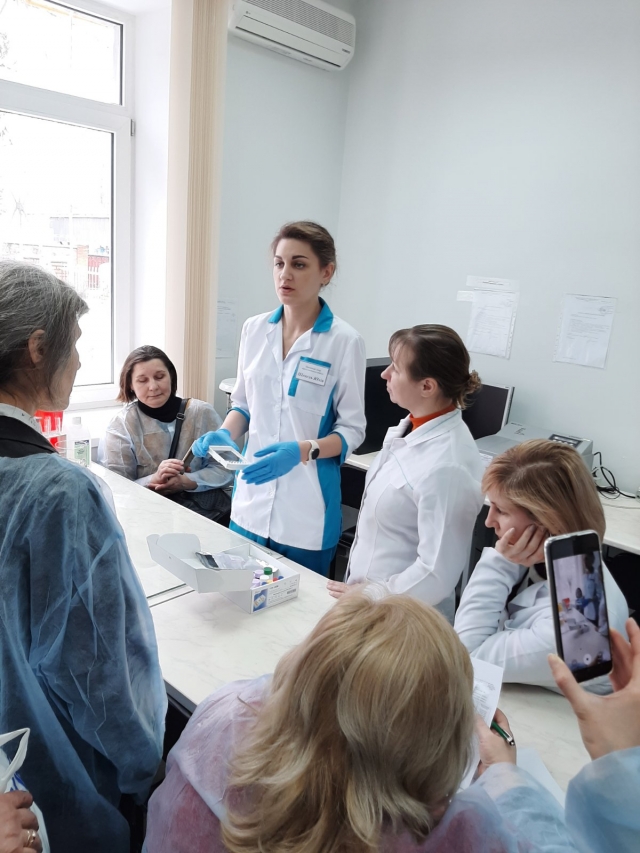 Тетяна Василівна прочитала там лекцію "Умови забезпечення якості імуноферментного аналізу. Причини помилок аналітичного етапу ІФА", а співробітники лабораторії показали постановку реакції ІФА та розказали особливості вірусологічної діагностики, яка проводиться у цій лабораторії.