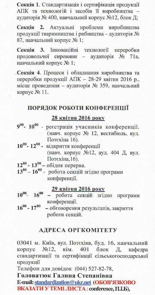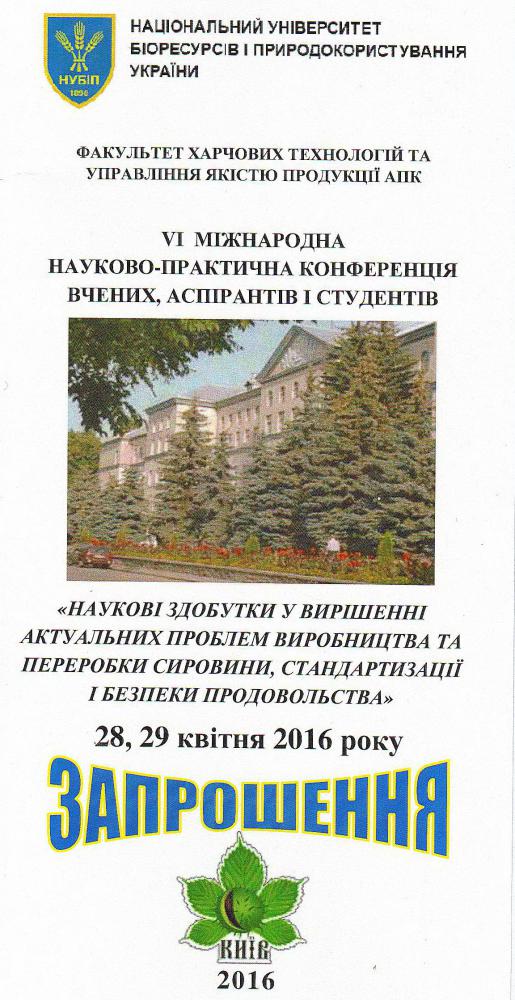 VІ МІЖНАРОДНА НАУКОВО-ПРАКТИЧНА КОНФЕРЕНЦІЯ ВЧЕНИХ, АСПІРАНТІВ І СТУДЕНТІВ «НАУКОВІ ЗДОБУТКИ У ВИРІШЕННІ АКТУАЛЬНИХ ПРОБЛЕМ ВИРОБНИЦТВА ТА ПЕРЕРОБКИ СИРОВИНИ, СТАНДАРТИЗАЦІЇ І БЕЗПЕКИ ПРОДОВОЛЬСТВА» Оргкомітет конференції 28 березня 2016 року 12:00 - 12:00
