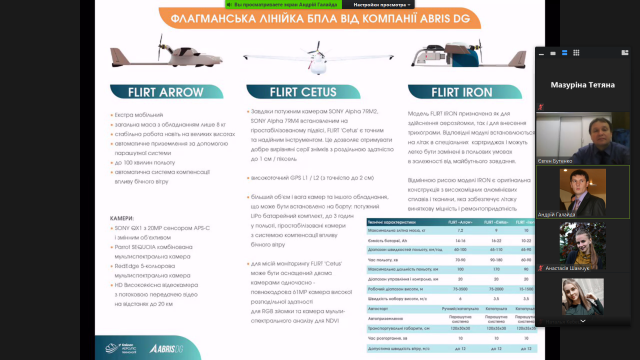 Одним із завдань даної зустрічі на лекції було поглиблене ознайомлення із ТОВ «Кайлас А» і його флагманською лінійкою БПЛА від компанії ABRIS DG. До уваги студентів було представлено моделі БПЛА: Flirt Arrow, Flirt Cetus та Flirt Iron із перевагами та недоліки кожної моделі.