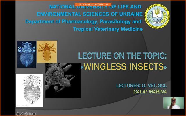 28 вересня докторка ветеринарних наук Марина Владиславівна Галат провела відкриту лекцію на тему "Wingless insects" ("Безкрилі комахи") з дисципліни «Паразитологія та інвазійні хвороби тварин» англійською мовою для студентів англомовної групи 4 курсу ОС «Магістр».