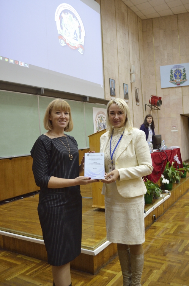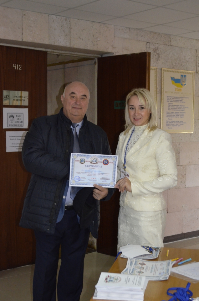 Вітання та від декана факультету ветеринарної медицини Одеського державного аграрного університету, кандидата ветеринарних наук, доцента Родіонової Катерини Олександрівни та вручення монографії.