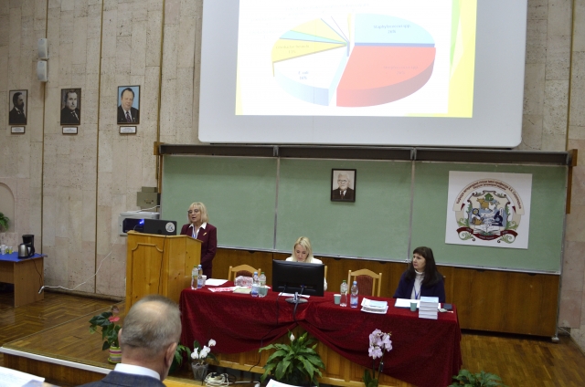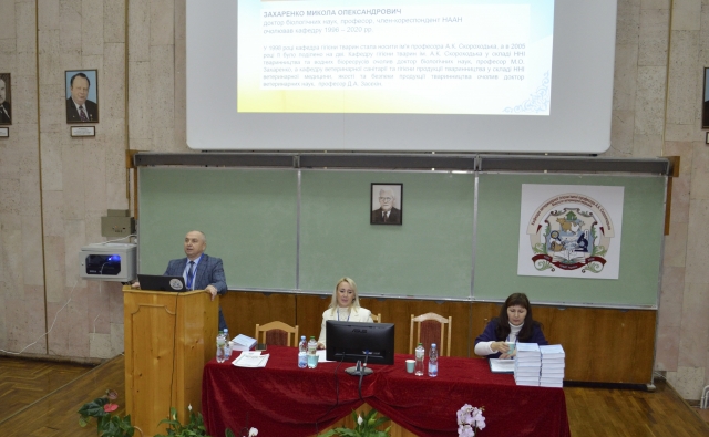 Співголова оргкомітету завідувач кафедри ветеринарної гігієни імені професора А.К.Скороходька, доктор ветеринарних наук, доцент Кучерук Марія Дмитрівна розповіла учасникам зібрання про сьогодення кафедри, здобутки та перспективи. Історія кафедри викладена в монографії та виголошена на пленарному засіданні конференції «Єдине здоров’я» професором Захаренком М.О.