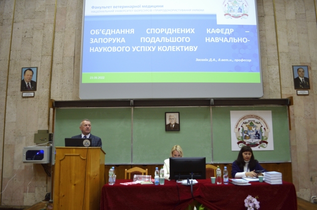 Доповідь доктора ветеринарних наук, професора Засєкіна Дмитра Адамовича на тему: "ОБ'ЄДНАННЯ СПОРІДНЕНИХ КАФЕДР – ЗАПОРУКА ПОДАЛЬШОГО НАВЧАЛЬНО-НАУКОВОГО УСПІХУ У КОЛЕКТИВІ"