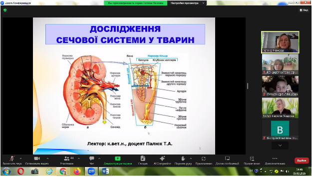 Згідно графіку проведення відкритих лекцій на факультеті ветеринарної медицини у ІІ семестрі 2025-2026 навчального року, 5 березня 2026 року проведена відкрита лекція, кандидатом ветеринарних наук, доцентом кафедри внутрішніх хвороб тварин Тетяною Анатоліївною Палюх з дисципліни «Клінічна діагностика хвороб тварин» для студентів 3 курсу ОС «Магістр» на тему: «Дослідження сечової системи у тварин». Лекція відбулася у дистанційному форматі на платформі Zoom.