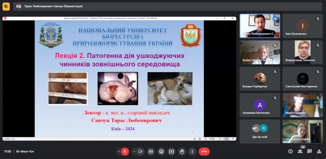 1 березня 2024 року відбулася відкрита online-лекція кандидата ветеринарних наук, старшого викладача кафедри хірургії і патофізіології ім. акад. І.О. Поваженка Тараса Савчука з дисципліни “Патофізіологія тварин” на тему «Патогенна дія ушкоджуючих чинників зовнішнього середовища» для здобувачів вищої освіти 2 курсу 9-10 групи факультету ветеринарної медицини.