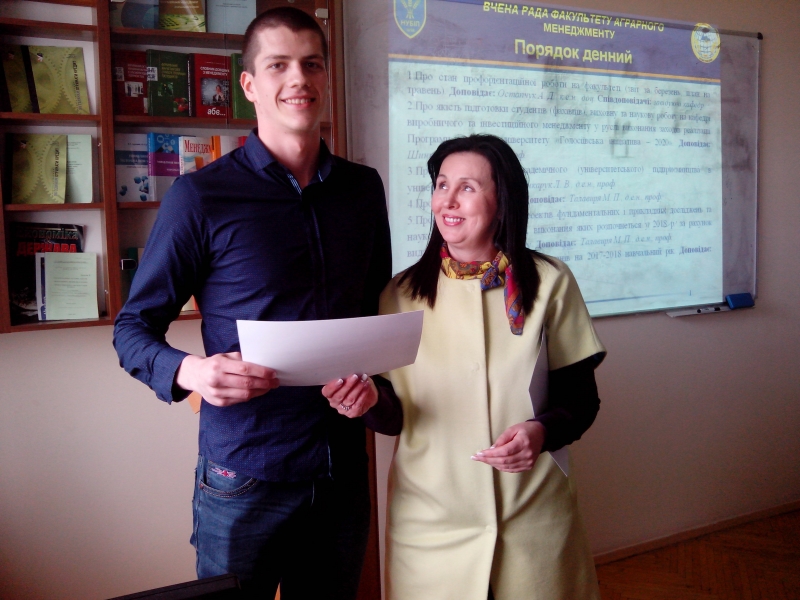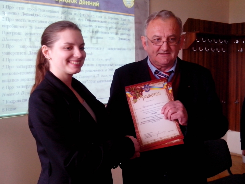 У різному Голова вченої ради Анатолій Остапчук спільно із завідувачами кафедр привітав переможців Всеукраїнської науково-практичної конференції «Роль молоді у розвитку АПК України» та Міжнародної науково-практичної студентської конференції «Перспективи розвитку аграрного сектору України в умовах глобалізаційних викликів» вручивши їм грамоти і подяки.