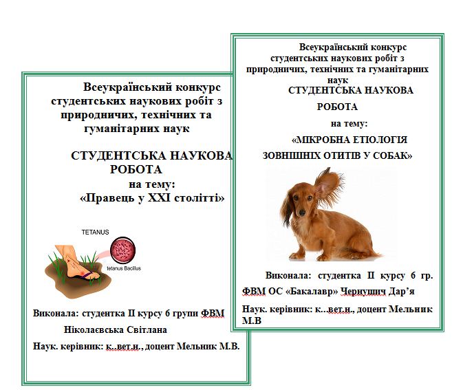 На розгляд конкурсної комісії у складі директора НДІ здоров’я тварин проф. Засєкіна Д. А., заступників декана ФВМ доц. Данілова В. Б. та доц. Жука Ю. В., зав. кафедри хірургії і патофізіології ім. акад. І. О. Поваженка проф. Малюка М. О. та заступника директора НДІ здоров’я тварин з питань студентської наукової роботи доц. Сердюкова Я. К. було подано 22 конкурсні роботи, серед яких були дві наукові роботи студентів нашого гуртка «Мікробіології продукції тваринництва» від кафедри мікробіології, вірусології та біотехнології.