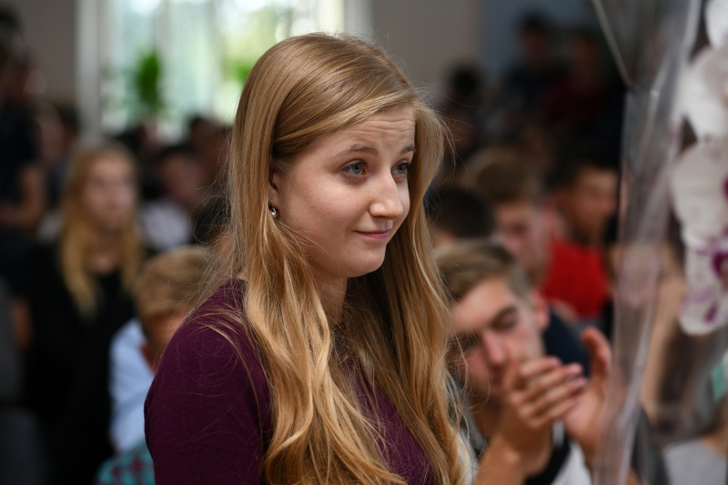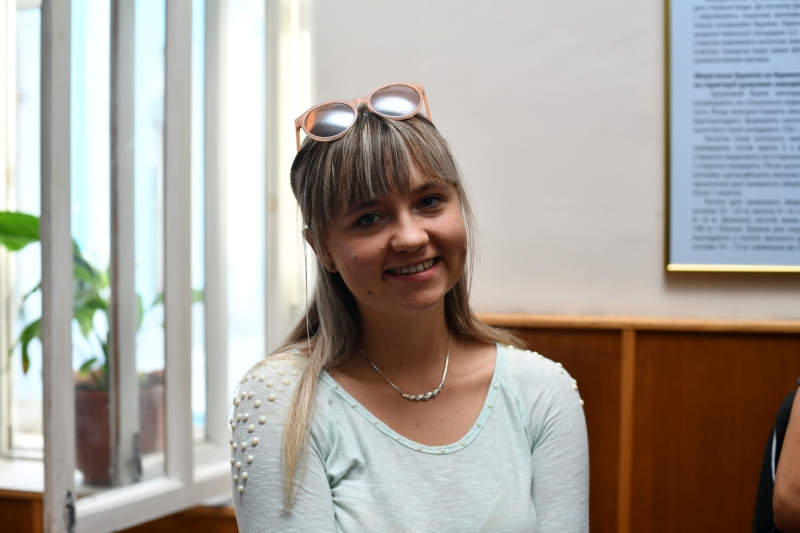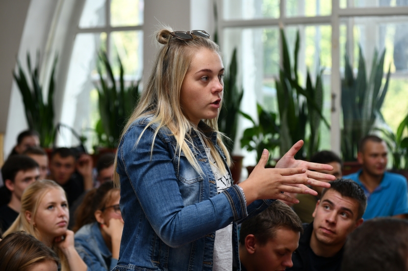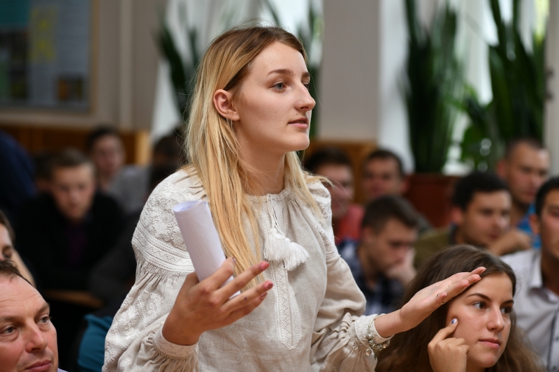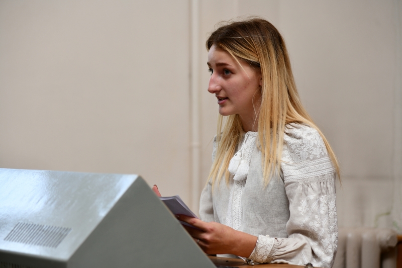 Другою була другокурсниця Віталіна Чуб, яка швидко та лаконічно представила студентам свої плани щодо організаційної програми студентського самоврядування.