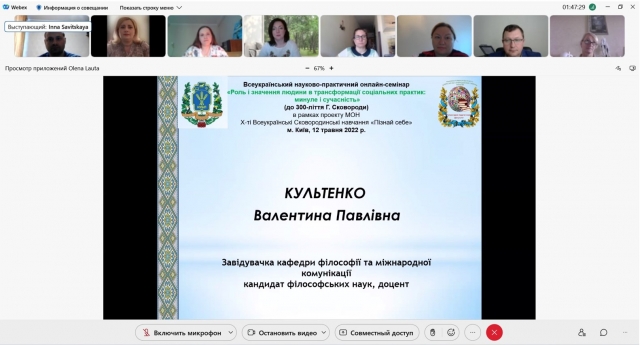 Відбулися ювілейні Х-ті Сковородинські навчання: Всеукраїнський науково-практичний онлайн семінар «Роль і значення людини в трансформації соціальних практик: минуле і сучасність