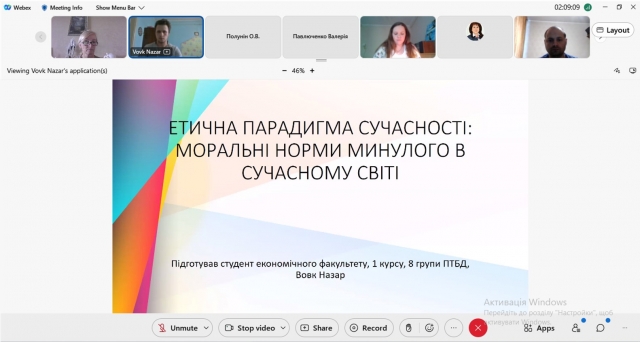 Незабутні враження залишили доповіді наших дослідників-початківців. Серед них: «Етична парадигма сучасності: моральні норми минулого в сучасному світі» (ВОВК Назар, ПТБД, ЕФ).